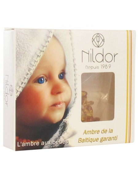 Nildor Collier Ambre Bébé Perles Chips est un ravissant collier ambre pour bébé, le collier mesure 33 cm, conforme à la Norme NF EN71.